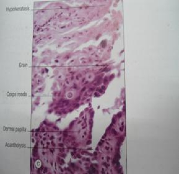 – Thể bọng nước, trợt da: bệnh Hailey-Hailey, Pemphigus vulgaris, chốc, bệnh mô bào ác tính tế bào Langerhans, nhiễm nấm Candida